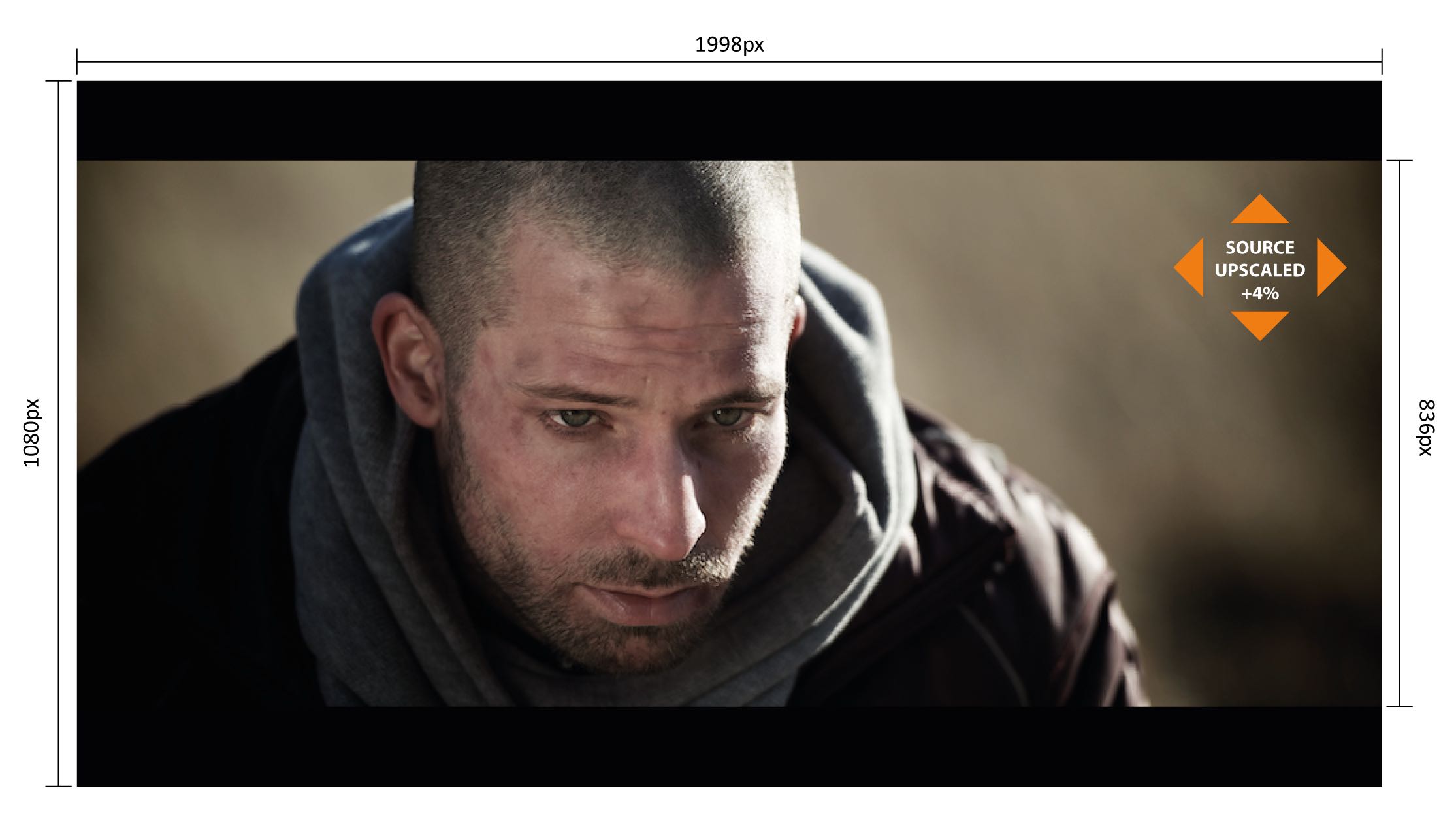 Here’s some examples of how we’ll adjust your picture for 2K DCPs, if you deliver your source video in Full HD.