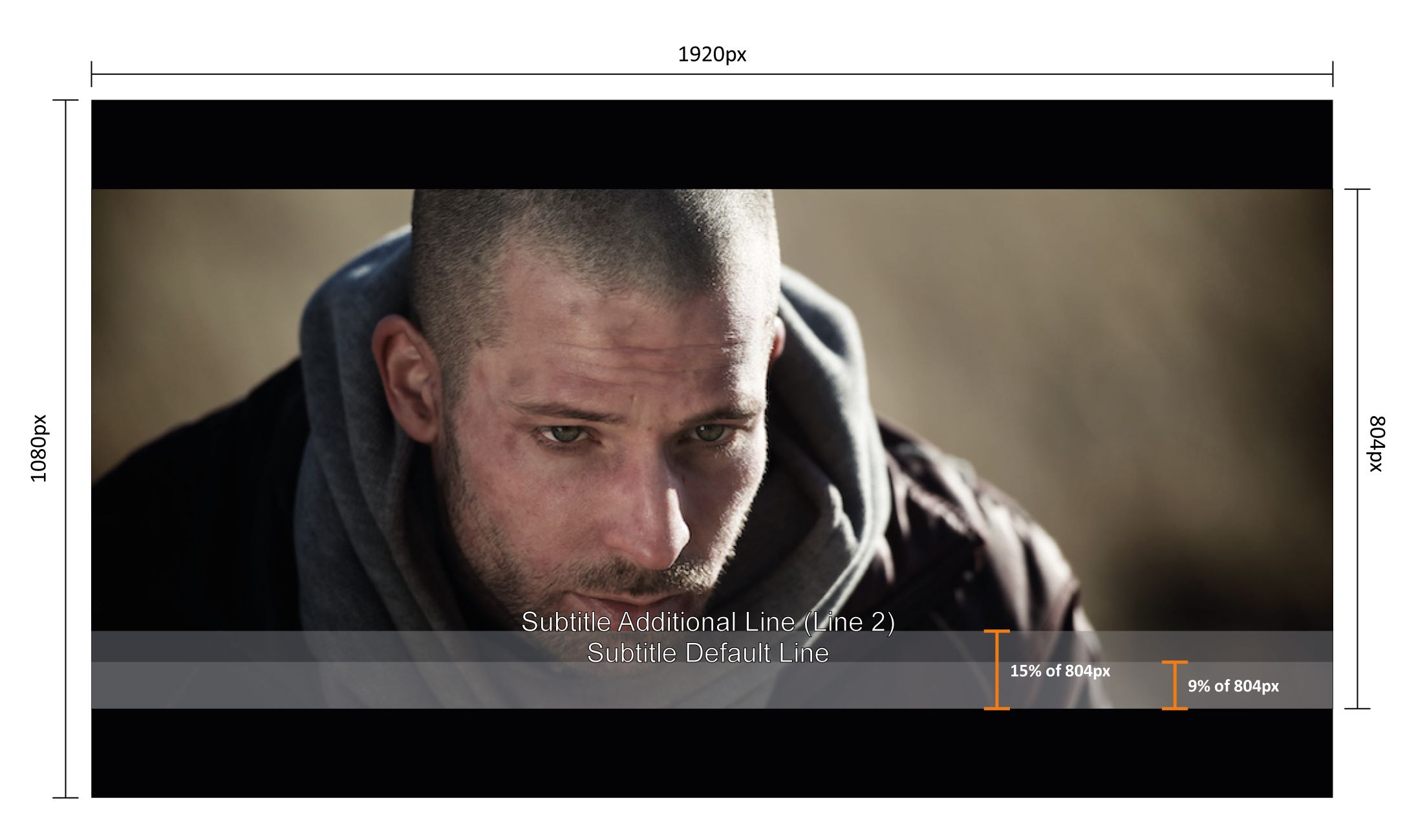 Alternatively we also accept SRT subtitle files. Since SRT files don’t include information on vertical positions, we’ll use the common standard if you don’t give us other instructions: Line 1 = 9% from bottom / Line 2 = 15% from bottom